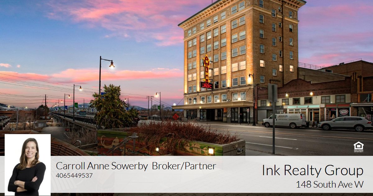 Rare opportunity to secure commercially zoned space in the heart of Downtown Missoula’s Historic Wilma Building! Eye-level with the iconic Wilma Theatre’s news-board marquee, the East facing wall of windows look down onto Higgins Ave and beyond to Mt. Sentinel. Already baked into the fabric of Missoula culture and history, this 646 sq ft space awaits your creativity and design. Currently finished out in timelessly chic anthracite-grey cabinetry paired with quarts countertop, a massive storage closet, tile floors throughout and a fully functional kitchen; the layout lends itself to a multitude of options. Retrofit into Missoula’s newest buzz contributing establishment, remodel into a posh Downtown studio apartment, or keep as-is and supplement your current living situation with bonus storage, a home gym, and an off-site catering space. Immediate access to an across the hall common powder-room, ensures patrons and employees have the necessary amenities. Whatever it is that your imagination wants to lean into, the versatility of Unit 3-4/5 in the Historic Wilma may just be the perfect location for your next big idea to blossom. Call Carroll Anne Sowerby at (406)544-9537 or your real estate professional to arrange a private tour.